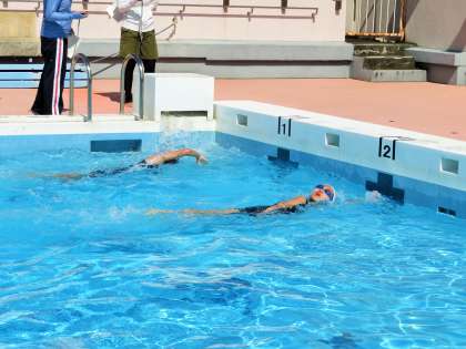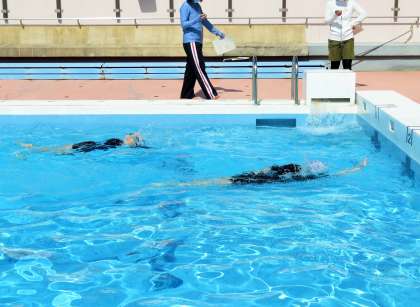 先生にタイムを読んでもらいながら、タイムトライアルに挑戦している子が多くいます!