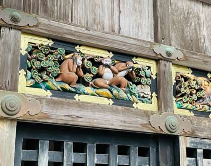 五重塔、そして「見ざる、言わざる、聞かざる」で有名な三猿の説明を聞きました。