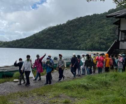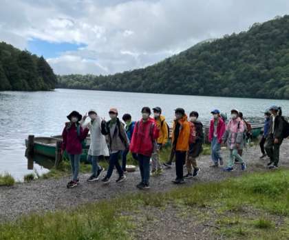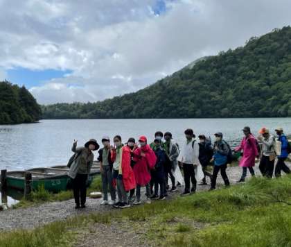 湯ノ湖に到着です。湯ノ湖は、白根山からの水に加えて、湖畔にある湯元温泉からの湯が流れ込んでいます。これからハイキングスタートです。