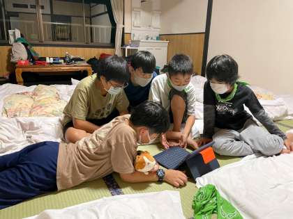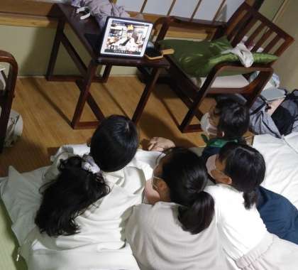 オンラインで繋がり、クイズに答えている部屋の様子です。