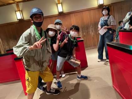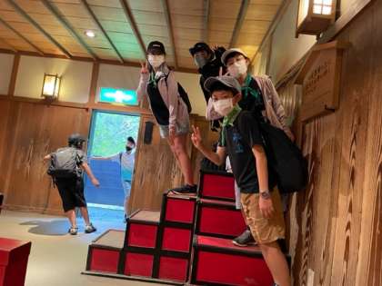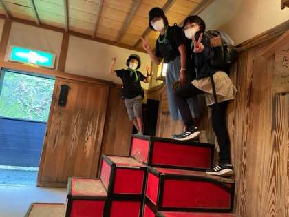 忍者修行の館です。この館は平衡感覚がおかしくなるように作られていて楽しいのです!