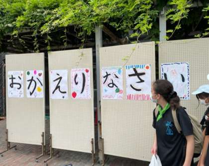 日光林間学園から帰ってきた6年生を「おかえりなさい!」と、お迎えしたのは4年生と5年生の子どもたちです。夏休み中のため、掲示にて気持ちを表したのです。6年生の子どもたちはもちろん、私たちも疲れが吹っ飛びしました。4年生、5年生、温かいメッセージをありがとう!