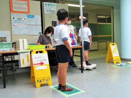 2学期の身体計測がはじまりました。姿勢正しく話を聞き、ソーシャルディスタンスも守れていて感心しました。