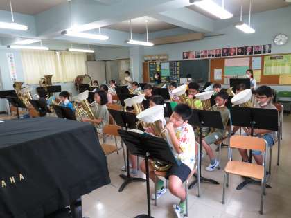 金管バンドは、夏季休業中も感染症拡大予防対策を実施しながら朝練習に取り組んできました。2学期も昨日から練習がスタートしています。