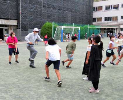 私は、4年生と長縄跳びです!