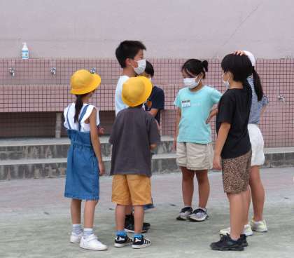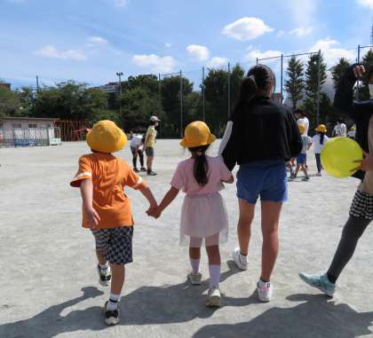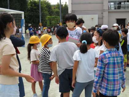 まずは、6年生が1年生のお迎え、そしてゲームの説明です。