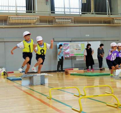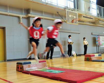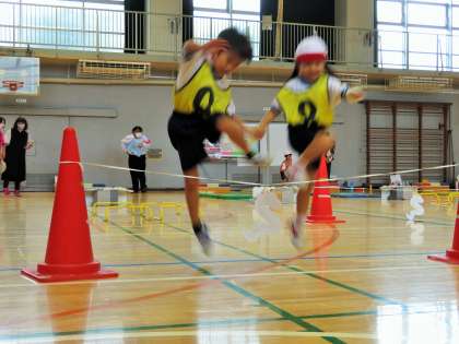 子どもたちは、二人で息を合わせてかっこよく跳んでいました。