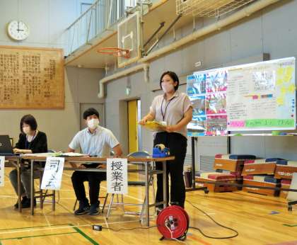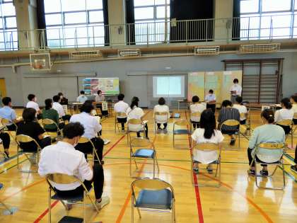 子どもたちの下校後は、実践した授業をもとに協議し、講師の先生からご指導をいただきました。講師の先生からは、「子どもたちが楽しそうに生き生きと取り組んでいた」「先生が笑顔で多くの称賛の言葉が出ていた」と褒めていただきました。