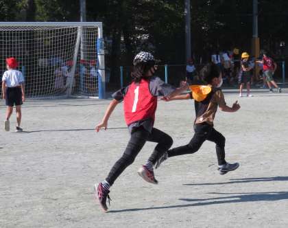 今日の始業前は、企画代表委員会が中心となって考えた外遊びの企画「みんなで遊ぼう1,2年生編」です。企画代表委員の子どもたちと1,2年生の1組の子どもたちが「氷おに」をして遊びました。1,2年生は高学年の子どもたちのスピードにびっくりです!