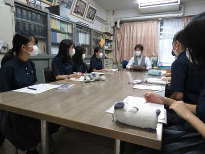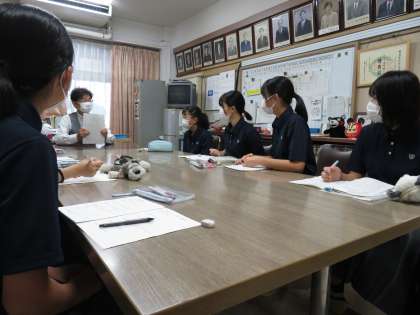 教師の仕事内容や志望動機、やりがいなど19項目の質問にお答えしました。最後にサプライズで、懐かしい校舎内の見学をしました。明るく受け答えができ、礼儀正しく行動のできる中学生を見てとっても嬉しく思いました。