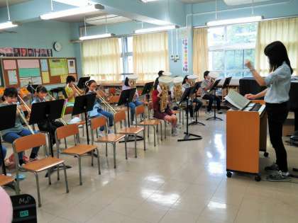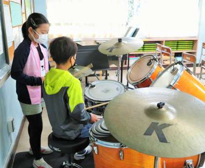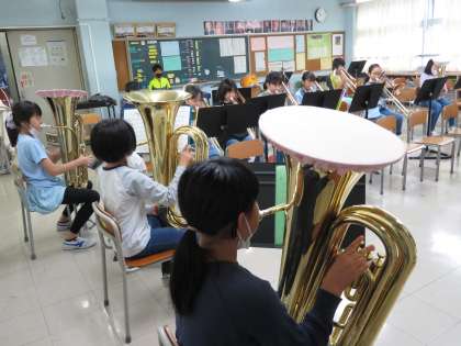 金管バンドの皆さんは、新たな目標に向けて練習に取り組んでいます。音楽室に入ると、いつも「おはようございます!」の爽やかなあいさつがあり温かい気持ちになります。
