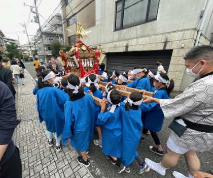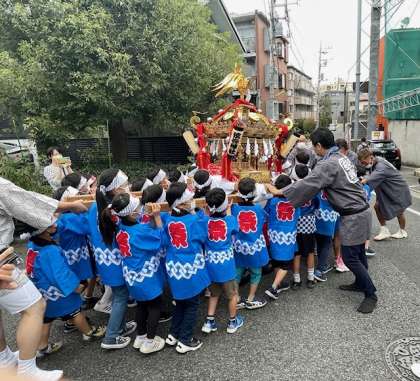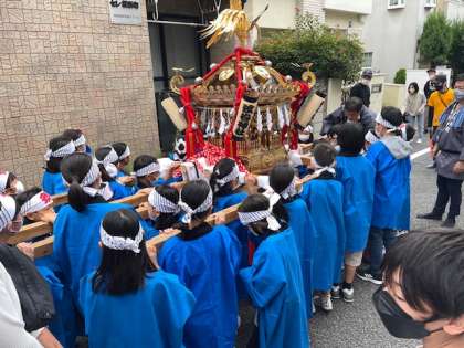 今日は、弦巻神社例大祭です。子ども神輿が3年ぶりに行われました。「わっしょい!わっしょい!」と盛り上がりました。子どもたちは、神輿を担ぐという貴重な体験をすることができました。