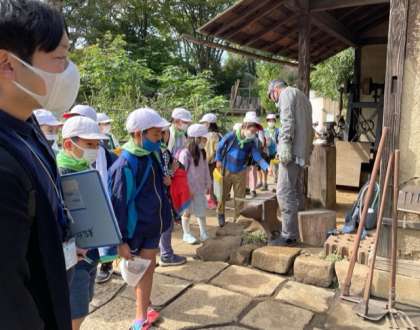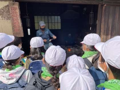 鍛冶屋では、刃物などの鉄製品を製造販売、修理を行う職人さんから、昔の道具や生活について話を聞くことを通して、より深く学ぶことができました。