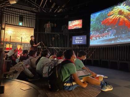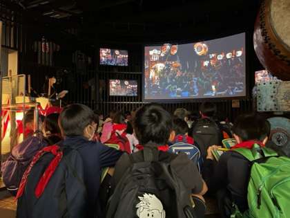 府中郷土の森公園に到着しました。まずは博物館での見学です。「くらやみ祭り」について、解説員の方からお祭りの様子や祭りを支える人々についての話を伺いました。