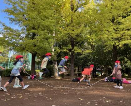 密を避けるために、クラス毎に分かれて冒険遊びやクラス遊び、長縄跳びなどをしました!