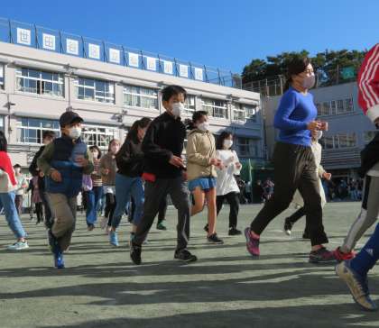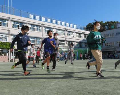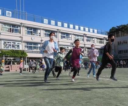 今日も多くの先生が一緒に走っているので、子どもたちは嬉しそうです!