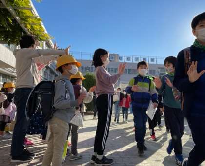 6年生が出発するときに、下級生が「いってらっしゃーい!」と、温かく手を振って見送ってくれました。優しい気持ちが表れていて、6年生も私たちも嬉しい気持ちでいっぱいになりました!