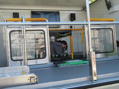 6年生は起震車体験をしました。「震度7」の揺れを体験しましたが、しっかりとテーブルの柱につかまっていないと吹っ飛んでしまいます。おへそを見るようにして頭を低くするなど、命を守る方法を教えていただきました。