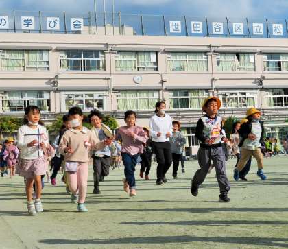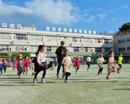 先生たちも一緒に走っているので、子どもたちは嬉しそうです!