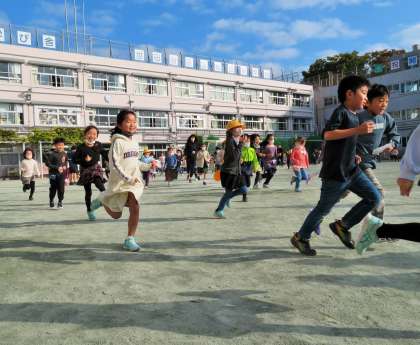 朝ランニングの曲が流れると、遊びをやめて音楽に合わせて、自分のペースでランニングに取り組んでいます。