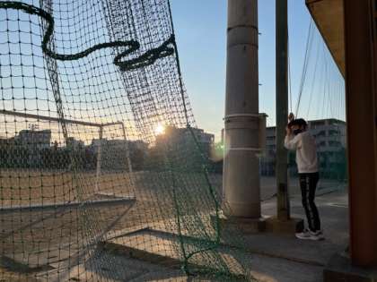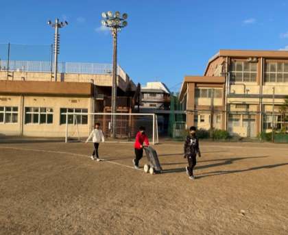 早く集合した子どもたちが、校庭のネットを開けたりラインを引いたりと自分たちの練習環境を整えています。