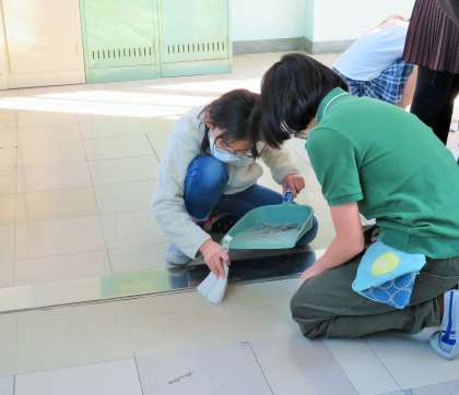 今年度の重点目標の一つとしての実践ですが、古い校舎をいつまでもピカピカにして使いたいと思っています。