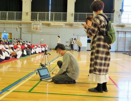 学習発表会でのZoom配信に向けて、PTAデジタル委員会の方が「テスト配信」を行いました。当日は、2つのカメラを使用して配信してくださいます。1つは定点から、もう1つは発表する子どもたちの動きを追いながら、同時に適度な大きさで視聴することが可能になります。松パパクラブの方々にもスタッフとしてご協力いただきます。本番に向けてのご準備、どうぞよろしくお願いいたします。