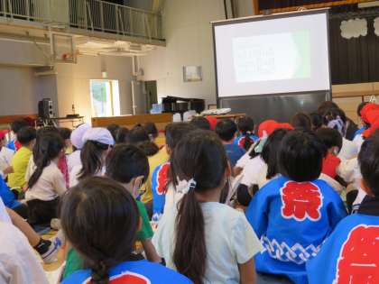 今日の児童集会は集会委員の皆さんによる『秋に関する「七五三」クイズ』集会です。「七五三」はいつでしょうか。「七五三」で食べるものなど、全校の子どもたちが答えられるように、やさしい問題から難しい問題まで工夫されていました。
