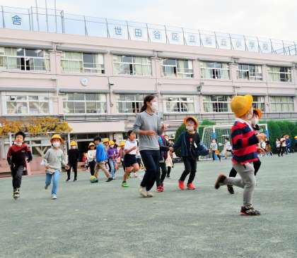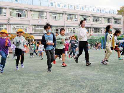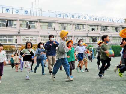 先生たちも一緒に走っているので、子どもたちは嬉しそうです!