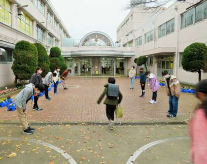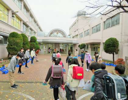 今日から12月の「優郷の学び舎」あいさつ運動がはじまり6年生が担当です。寒い朝でしたが正門と南門に分かれ、登校して来る子どもたちへ気持ちのよいあいさつを投げ掛けてくれています。