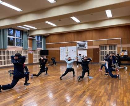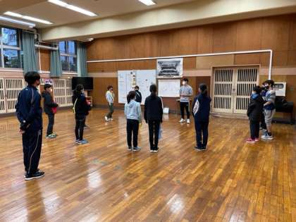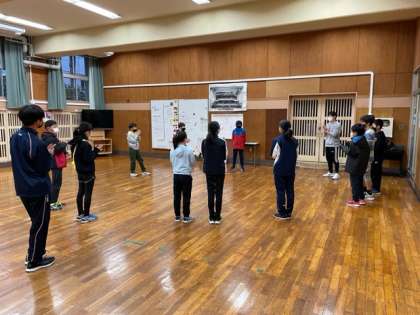 今朝は、世田谷子ども駅伝に向けての合同練習会です。雨のため校庭が使えませんので、弦巻中学校格技室を借用しての練習です。まずは、監督の挨拶、選手の決意表明からスタートです。