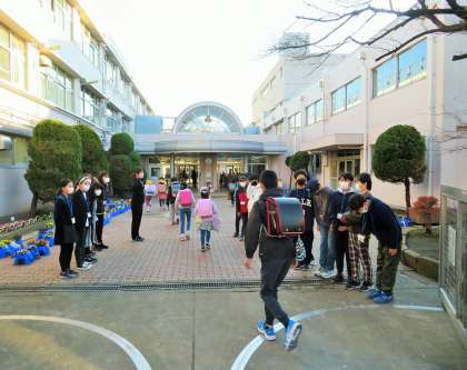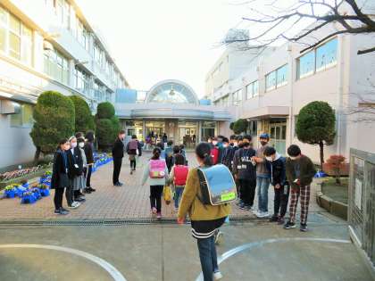 今日から12月の「優郷の学び舎」あいさつ運動後半がはじまり、6年生3,4組の子どもたちが担当です。寒い朝でしたが正門と南門に分かれ、登校して来る子どもたちへ気持ちのよいあいさつを投げ掛けてくれています。