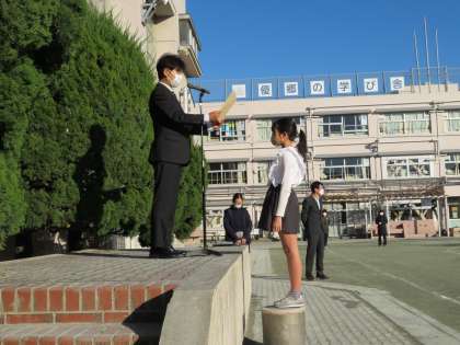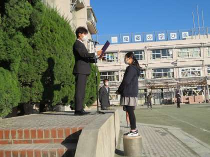 12/12 全校朝会〜税に関する絵はがきコンクール表彰〜1