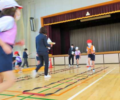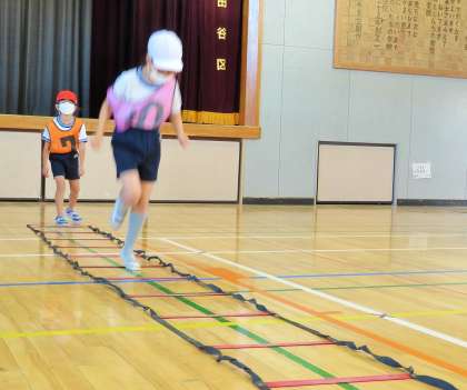 写真は、ラダーゾーンのお店での運動遊びの様子です。