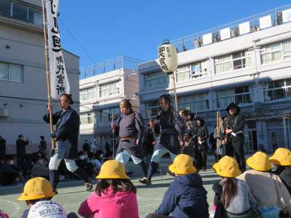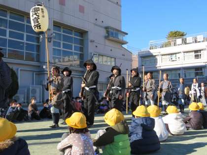 毎年12月と1月の15日・16日に開催される、世田谷冬の風物詩『世田谷のボロ市』が3年ぶりに行われ、5年に1度の『代官行列』も開催されました。嬉しいことに、その代官行列が松小に来てくれました。