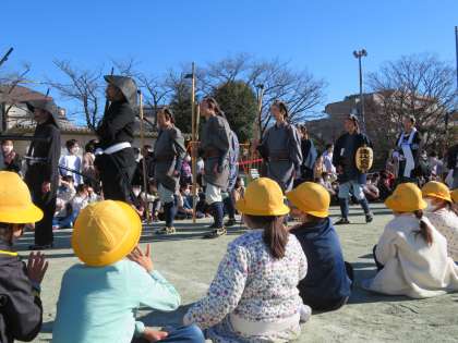 子どもたちは当時の様子を感じることができました。当時の衣服や身につけているものに着目して、しっかりと見ている姿が印象的でした。代官行列、次は5年後になります。