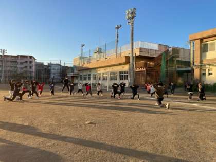 監督を中心にウォーミングアップ、そして中学生から大会に向けての決意表明がありました。