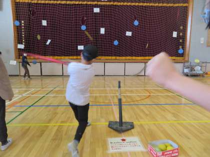 的をめがけて投げたりバットで打ったりして遊んでいます!