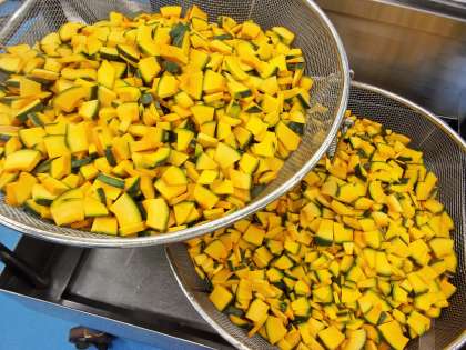 今日は、かぼちゃ(南瓜・なんきん)とゆずを使った冬至献立です。