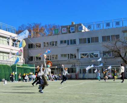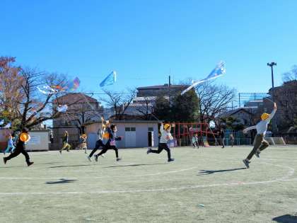 凧揚げは,広い場所がないとなかなかできませんが、今日は校庭で思いっきり楽しむことができました。