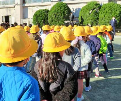今日は2学期の終業式です。子どもたちの姿勢に、いつも以上に一人一人の意志が感じられとても立派でした。子どもたちには、とっても嬉しい連絡がありましたので話をしました。11月18日に弦巻公園と三角公園、いっぷく公園で松小の5年生と4年生と2年生の人がゴミ拾いをしていたということなのです。このようなことは、なかなかできることではありません。とてもよい行いですね。
