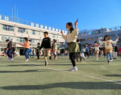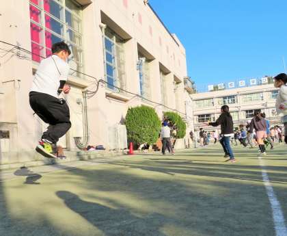 縄跳びは、リズム感や瞬発力、持久力など、スポーツにおける基礎的な能力が身に付く、理想的な運動ですので、これからも体育授業、休み時間などで取り組んでいきます。