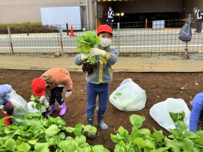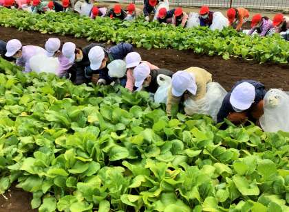 昨日は1年生が近くの秋山農園で小松菜採りをしてきました。子どもたちは、農園での説明をしっかりと聞き、”まぼろしの小松菜”の香りやさわり心地を楽しみながら収穫をしていました。