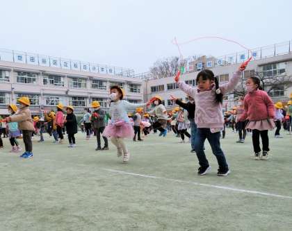 今日から1・3・6年生の短縄朝会がはじまりました。6年生の運動委員の子を手本に「リズム縄跳び」に取り組みました。基本的な前とび、後ろとび、駆け足とびなど、様々な跳び方を織り交ぜています。