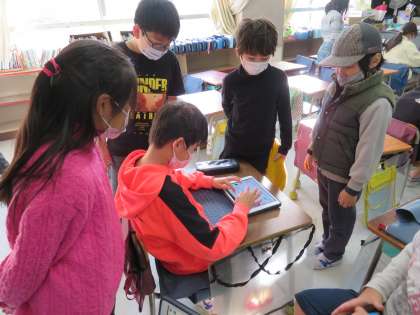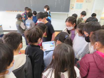 写真は、生き物、プログラミングクラブ見学の様子です。