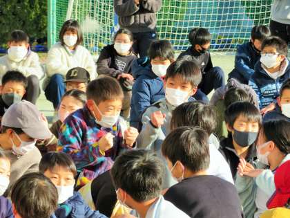 学年ごとに結果発表です。1位のクラスは、思わずガッツポーズが飛び出していました!