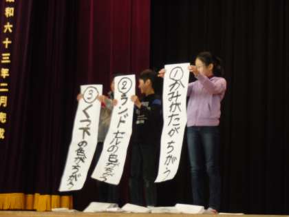 昨日、児童集会がありました。「かずし君密着24時間集会」です。