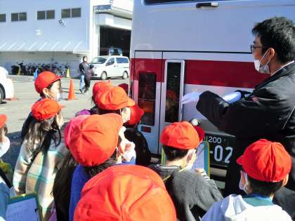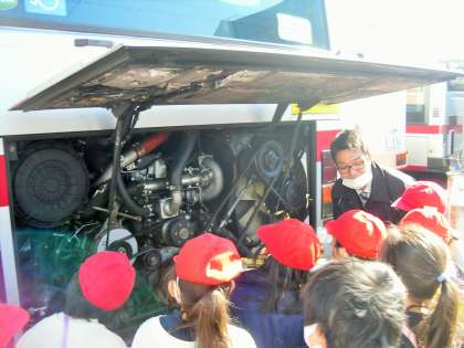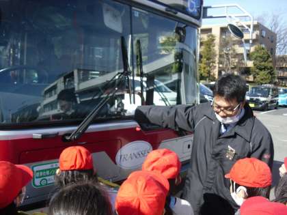 弦巻営業所では、当たり前に乗っているバスを貸し切りで乗らせていただき、バスのエンジンを間近で見せていただきました。