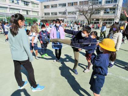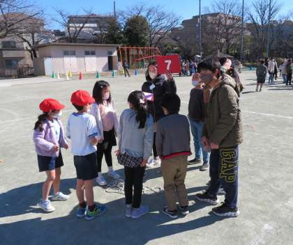 たてわり班ごとに集まりゲームの説明、そしてゲームのスタートです!