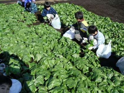 遅くなりましたが、一年生が小松菜とりに行きましたのでお知らせします。